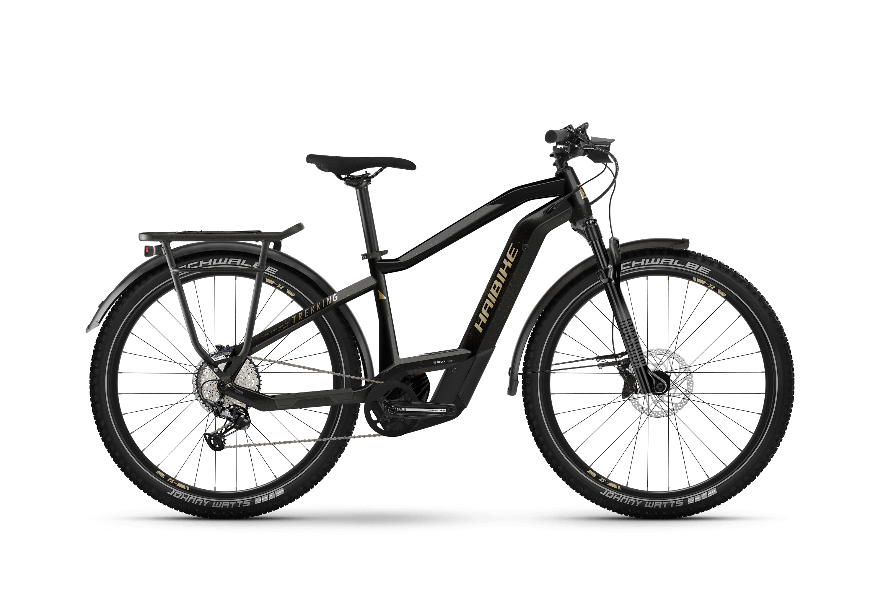 E-Bike Haibike Trekking 11 High i750WhMotor: Bosch Performance CX, 85 Nm, 750 Wh Akku gloss black/metal tan, 12 Gang Shimano Deore Listenpreis: 5199 € Art-Nr. 18881